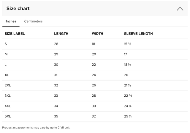 - Available in sizes S to 2XL