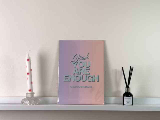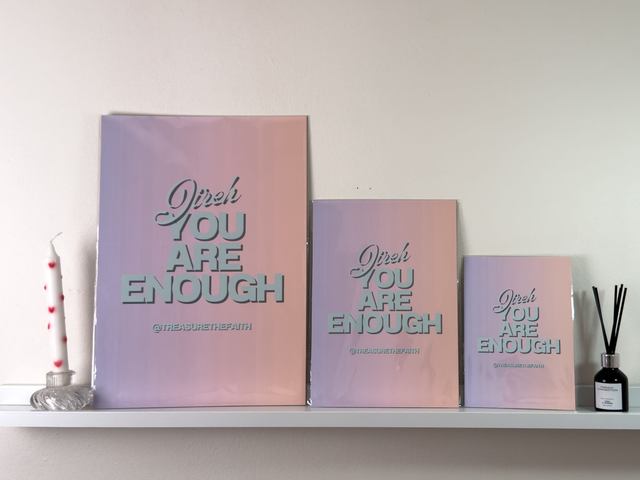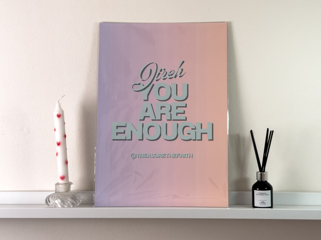 Celebrate divine provision and self-worth with this bold and beautiful “Jireh, You Are Enough” print, inspired by the powerful name of God found in Genesis 22:14. Featuring soft pastel gradients and striking typography, this Christian wall art blends modern design with timeless truth — perfect for any space that needs a reminder of God’s sufficiency.