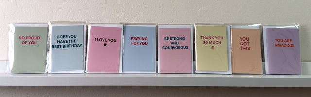 This charming pack of 8 mini greeting cards is perfect for sharing encouragement, gratitude, and love on any occasion. Each card features a clean, modern design with uplifting words printed in bold text on pastel-colored backgrounds.